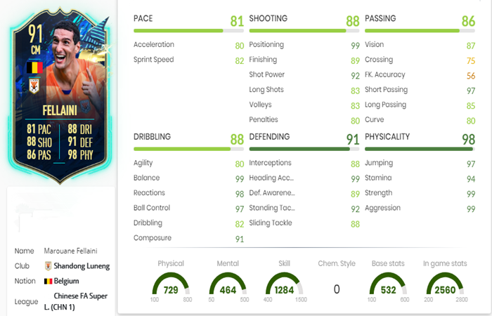 Particularly while considering the sensible expense to finish this TOTS SBC, this form of Marouane Fellaini isn't one that players need to leave behind. He has a 91 OVR rating, however is dainty on shortcomings with his 75 in Crossing and 56 in Free Kick Accuracy being just under 80 appraisals he has. Fellaini has an astonishing 98 in Physicality because of his 99 in Strength and Aggression, and he's additionally got a 99 in Positioning, Heading Accuracy, and Balance what's more.