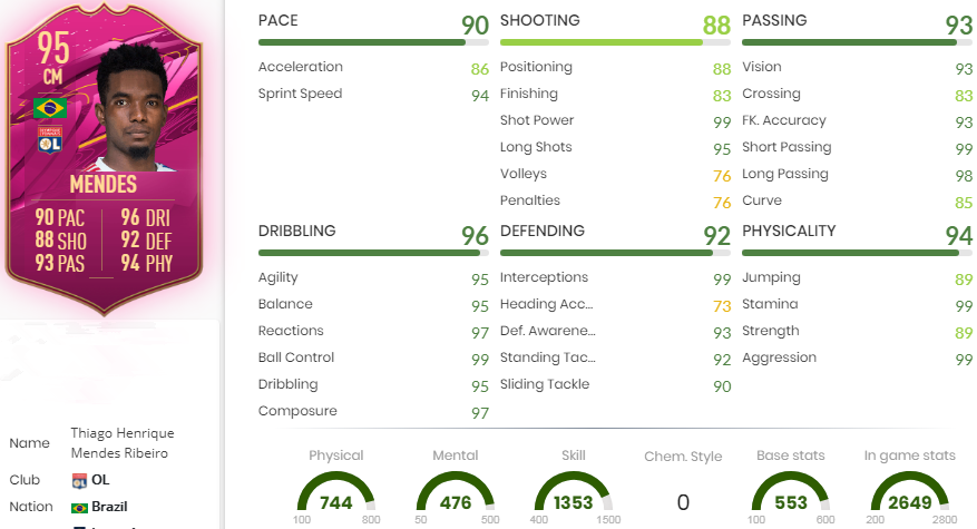 simply a 95 OVR rating, Mendes probably won't appear to be advantageous while