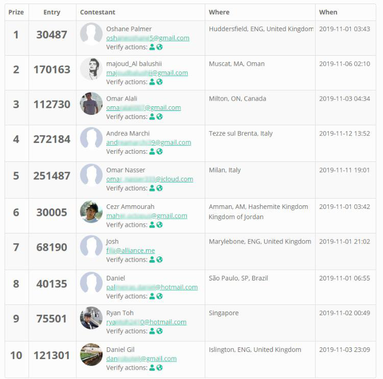 The winners are randomly chosen by the third party gleam.io according to their entries as long as the event ends. They are: