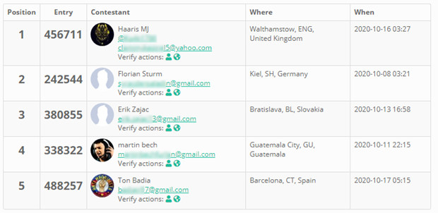 Congratulations! 5 winners have been randomly chosen by the third party Gleam. Check the prizes and winners as follow now,